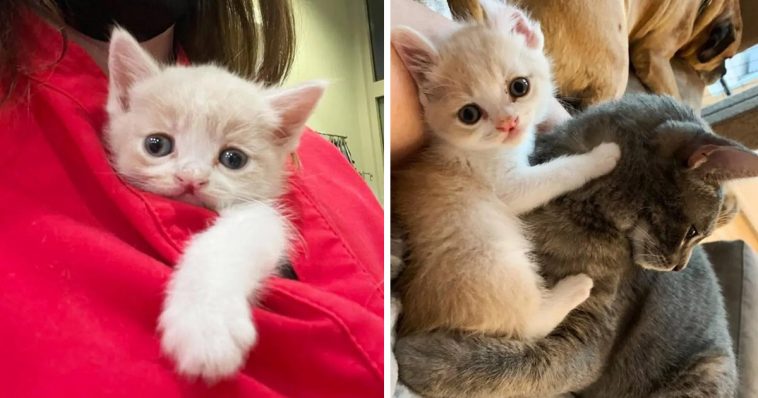 When his rescuers arrived at the scene, they noticed there was something a bit different about this kitten.