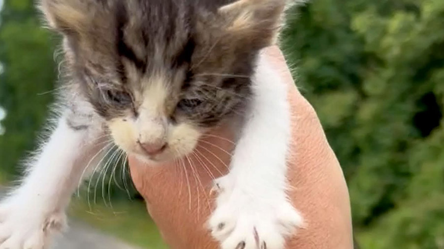 He did what any kind person would do and stopped to help as he could see that the kitten was very young and felt that the poor thing probably wouldn’t make it through the night.