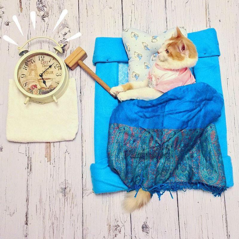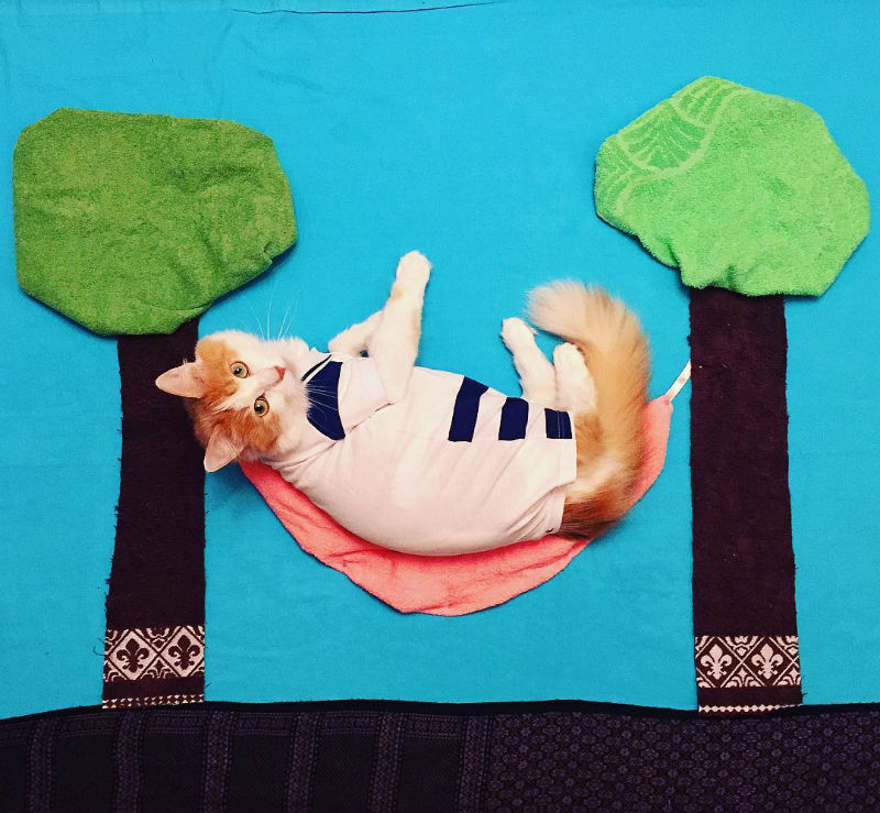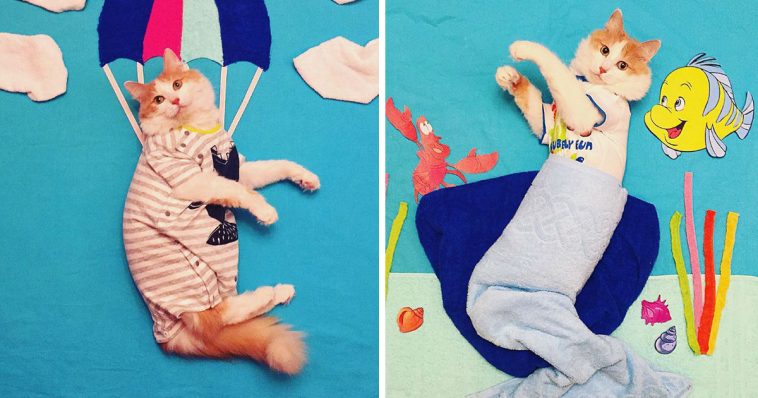 Meet Kuzya. He’s a cat from Moscow. He loves to dream and fantasize so much, that he takes exclusive fantasy photo shoots for all his Instagram followers. He has fans from all over the globe who adore his fantasy pictures, and can’t wait to see what he’ll come up with next. He likes to create really creative with his photo shoots. Or perhaps his owner is the genius behind this fantastic cat play.