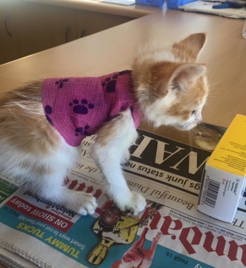 Little Warrior was severely injured and rescued from a factory when he was taken to The Kitten Cottage rescue centre in South Africa. He had somehow got caught in one of the forklift trucks and was immediately rushed to a veterinarian. The wounds were extensive and unfortunately covered most of his body, he was bandaged up and placed on a heavy dose of antibiotics, and it seemed like a hopeless situation. Warrior, however, had no intention of giving up!
