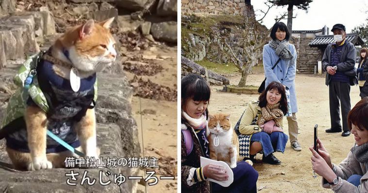 JAPAN – In Takahashi, Okayama Prefecture, a feline “lord” of Bitchu Matsuyama Castle is currently drawing many visitors. That sure is a welcomed relief, following a heavy hit from natural disasters last summer. Sanjuro, who is a brown and white male cat thought to be 3 or 4 years old, is the cat lord of the popular castle, nicknamed “castle in the sky.”