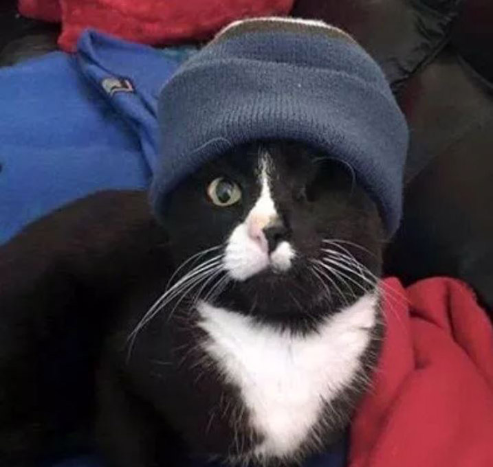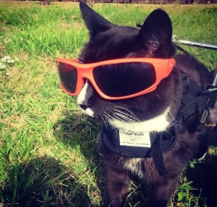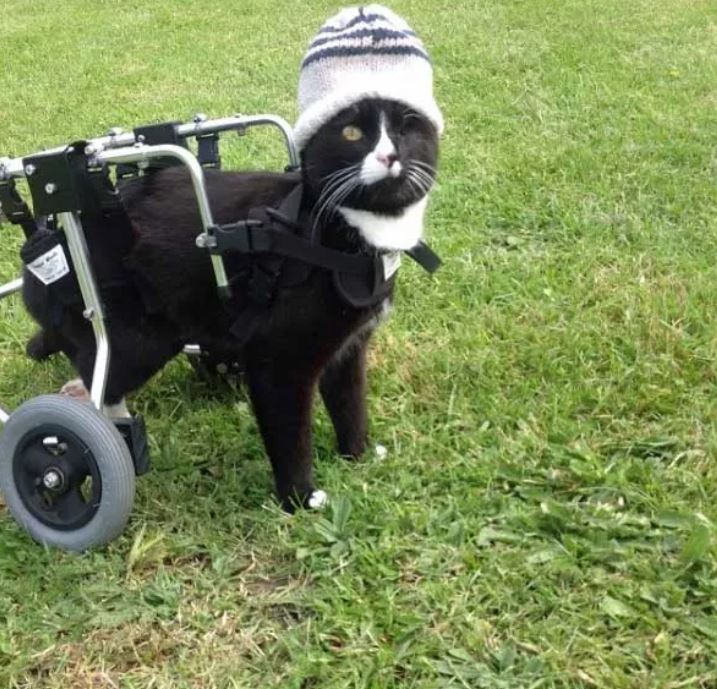 This 10 year old kitty has used at least two or three of his lives so far. He’s lost an eye due to a scratched cornea and then a few years later was hit by a car which left him without the use his back legs, but take a look at these pictures and you can see he’s still kickin’!