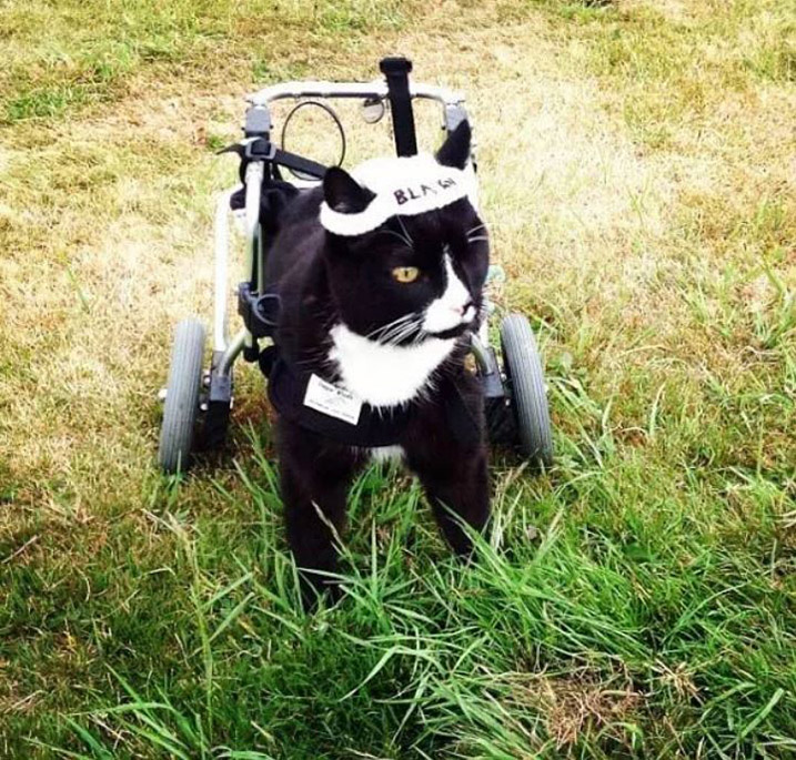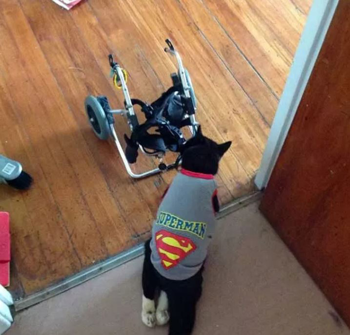 He lost the use of his back legs but has now been fitted with a fabulous wheelchair…