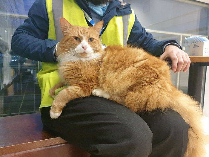 Henry’s story begins when his humans caught wind of his fondness for sauntering off out of his official home to spend time roaming the halls of the nearby Addenbrooke’s Hospital.