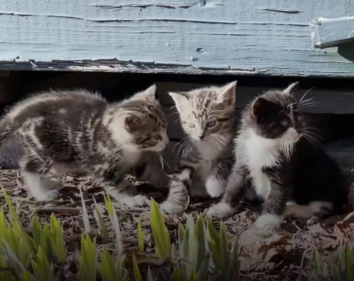 Finn discreetly watched Charlie through the window to see where she was heading after she had eaten. They had no need to worry because Charlie had chosen underneath their porch as the safest place for her litter of kittens.