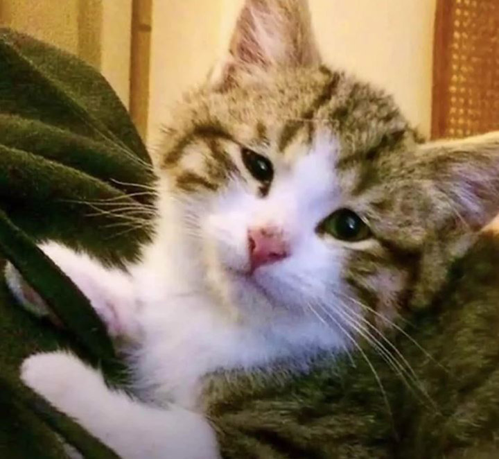 She may still have a sad looking face but now she is a very happy kitty and because of Morty knows all the joys of being part of a family.