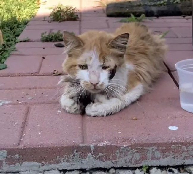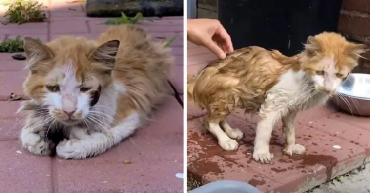 The cat was very malnourished and his fur was extremely matted, so this kind man decided to do whatever he could to help him.