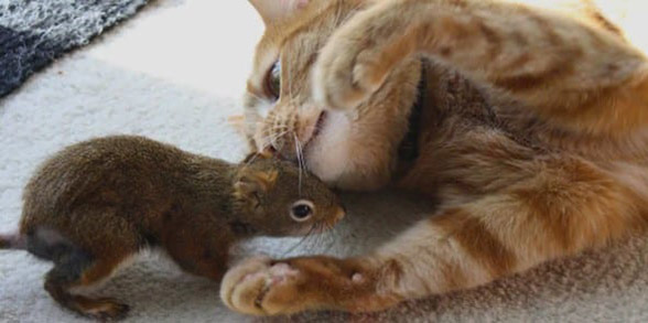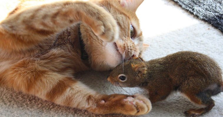 Who says that cats are cold and heartless? While we admit they don’t always get well with other animals, some cats can live with just about anyone. We’ve seen many cats and dogs live together, but what about a cat and a squirrel?