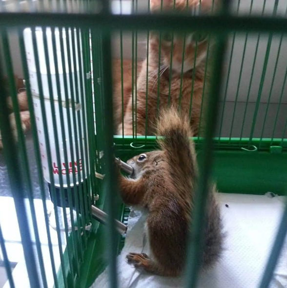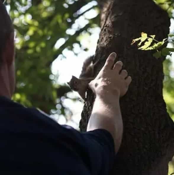 One day in 2017, a squirrel came in a pair’s (Mel and Will) yard. It was obviously running away from 2 rabid squirrels, so Will decided to help it off the tree. The squirrel was in bad shape and was looking quite lifeless. The tiny fella just scooped up in Will’s palm, grateful for the protection he offered. After a trip to the vet, Mel and Will decided to bring the squirrel home and take care for it. He was running around fast in just a short time, and he also made a new friend.