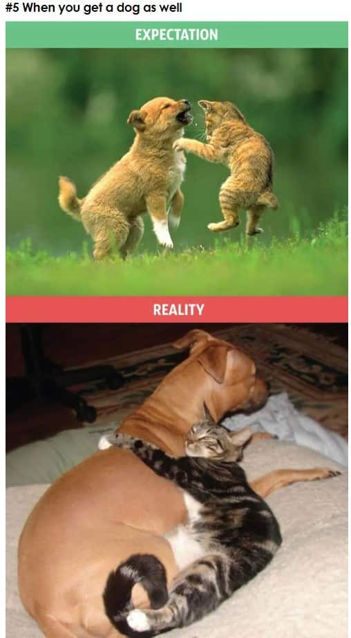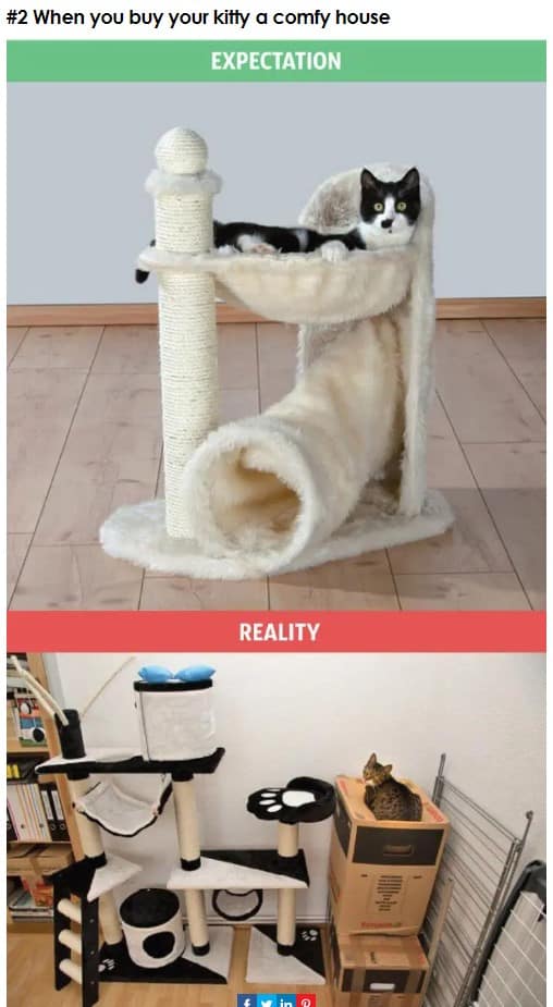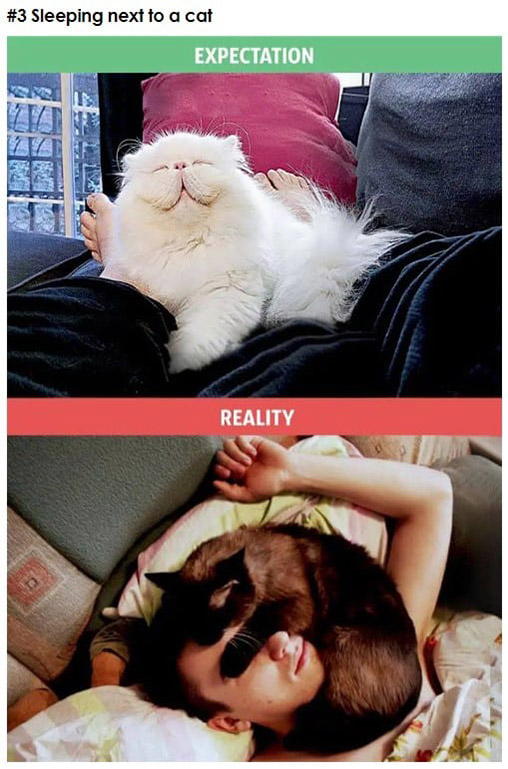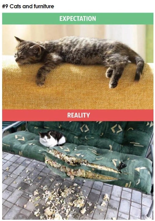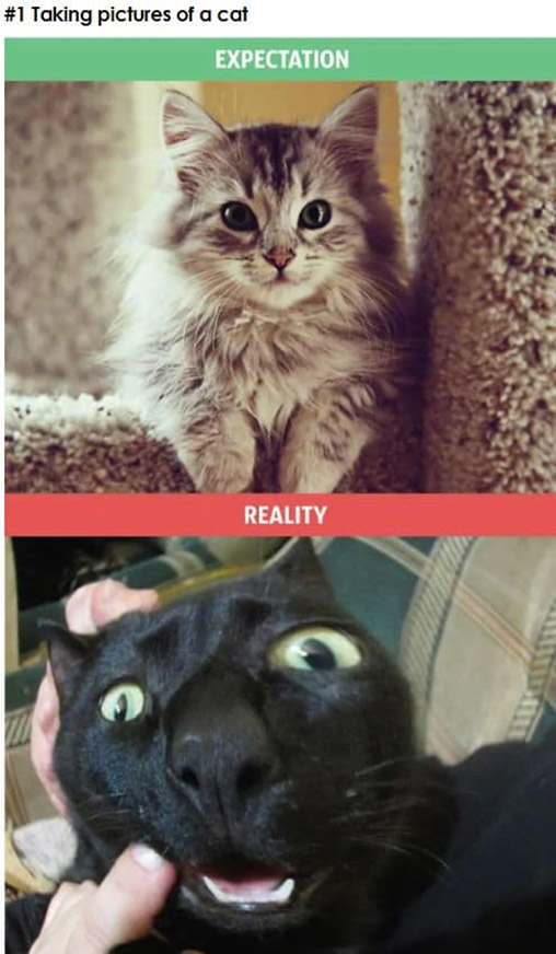 There’s no question that the expectations vs. reality of being a cat owner are pretty diverse. But, still, our lovely furballs are so fun that we never regret their antics. Here are a dozen pictures that perfectly show the expectations vs. reality of being a cat owner.