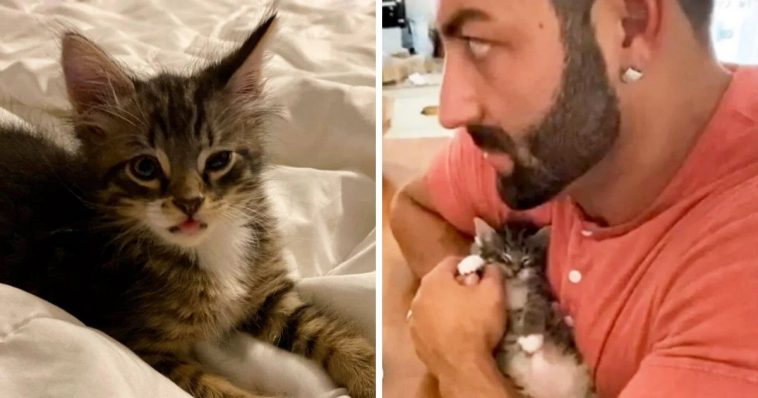 You know how tough people don’t have pets and usually say they’d rather get a dog than a cat? Well, this is a story that things don’t turn out like they always want. A guy named Mark recently shared such a story online, saying he was a tough opponent to cats until he met one up close. All it took to break his tough guy shell was a one-month old kitty named Mat.