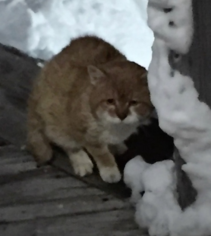 “He would stare out our back door and look up at the goat pen all day.” It seemed the kitten was better but further complications made the vet conclude “that GG should not be an outdoor cat at all anymore.”