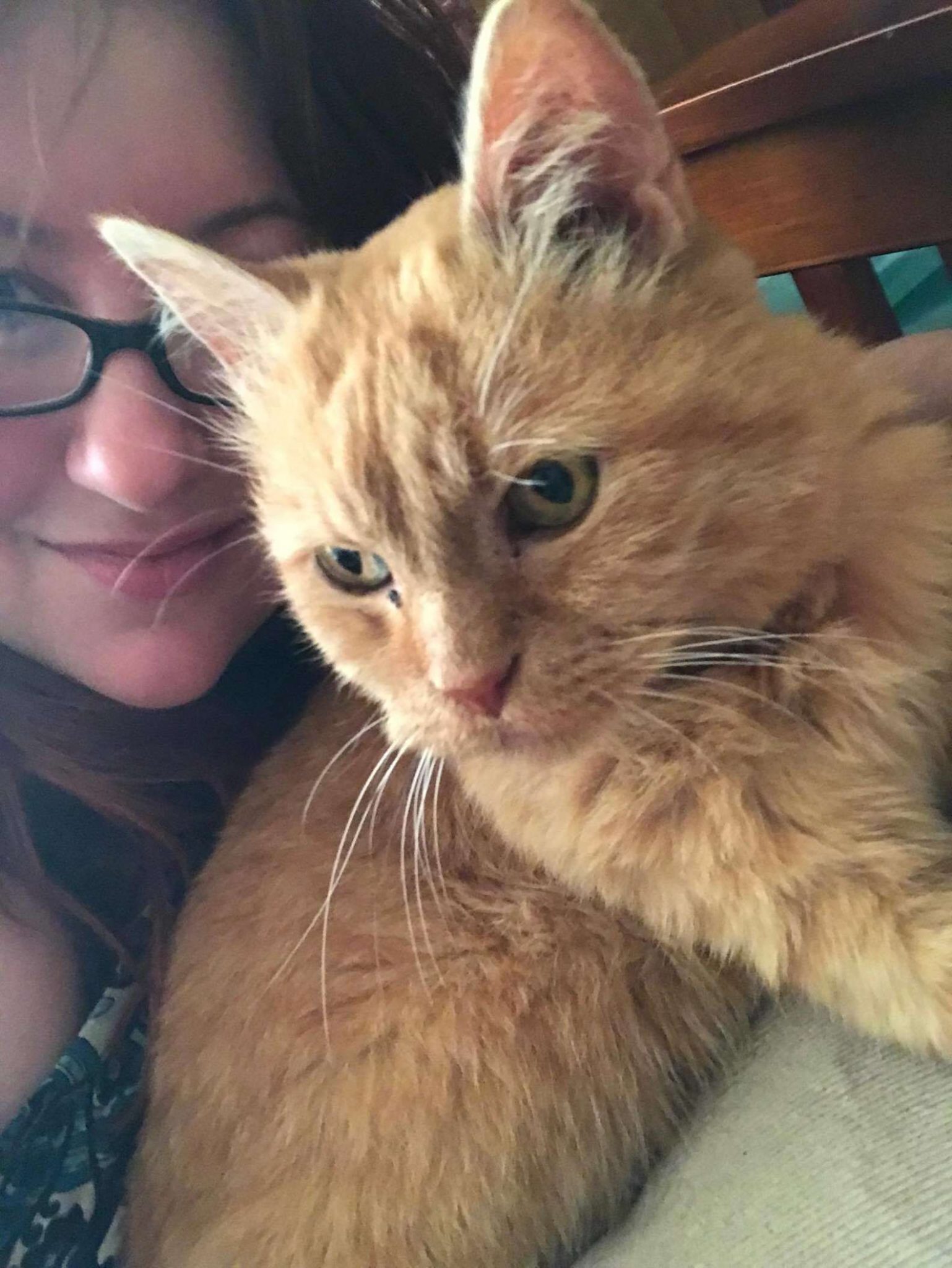 One month later, GG developed an eye infection. After a visit to the vet, it was determined that the kitten was seriously ill and needed to spend time inside