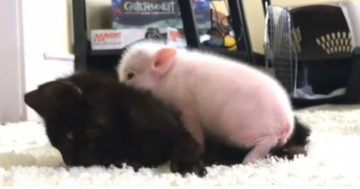 Peanut started playing with the cat and then with his new siblings, creating a bond which helped heal the loss of Marvin