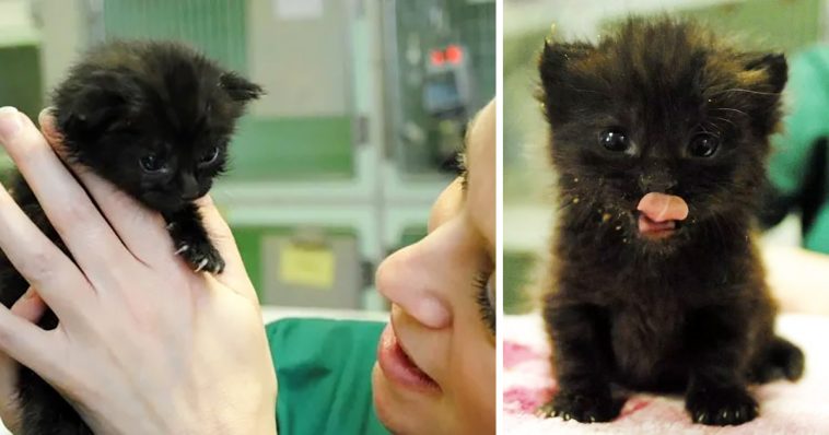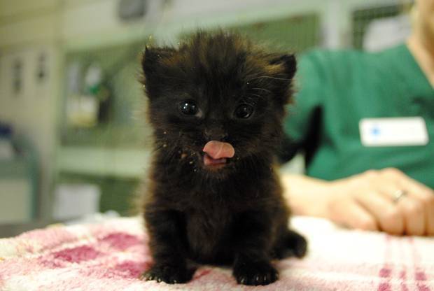 The kitten, thought to be about four weeks old, was abandoned on a District line train at Victoria. The tiny ball of fluff was found on Monday night, cowering in a box, and covered in an unidentified sticky substance. After being handed to TfL staff, she was soon cleaned up by veterinary nurses at the animal charity Blue Cross, which has an animal hospital nearby.