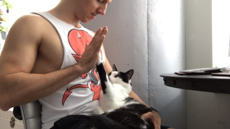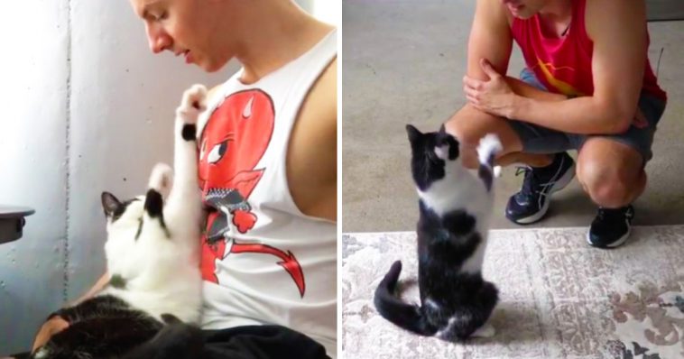 This kitty may be confused, or just has a good sense of humor. He gets very excited when his human asks “who’s a good boy?”. He reaches out his tail in response to his human’s questions, and also wags his tail. He may look like a cat, but he clearly has some dog in him too.