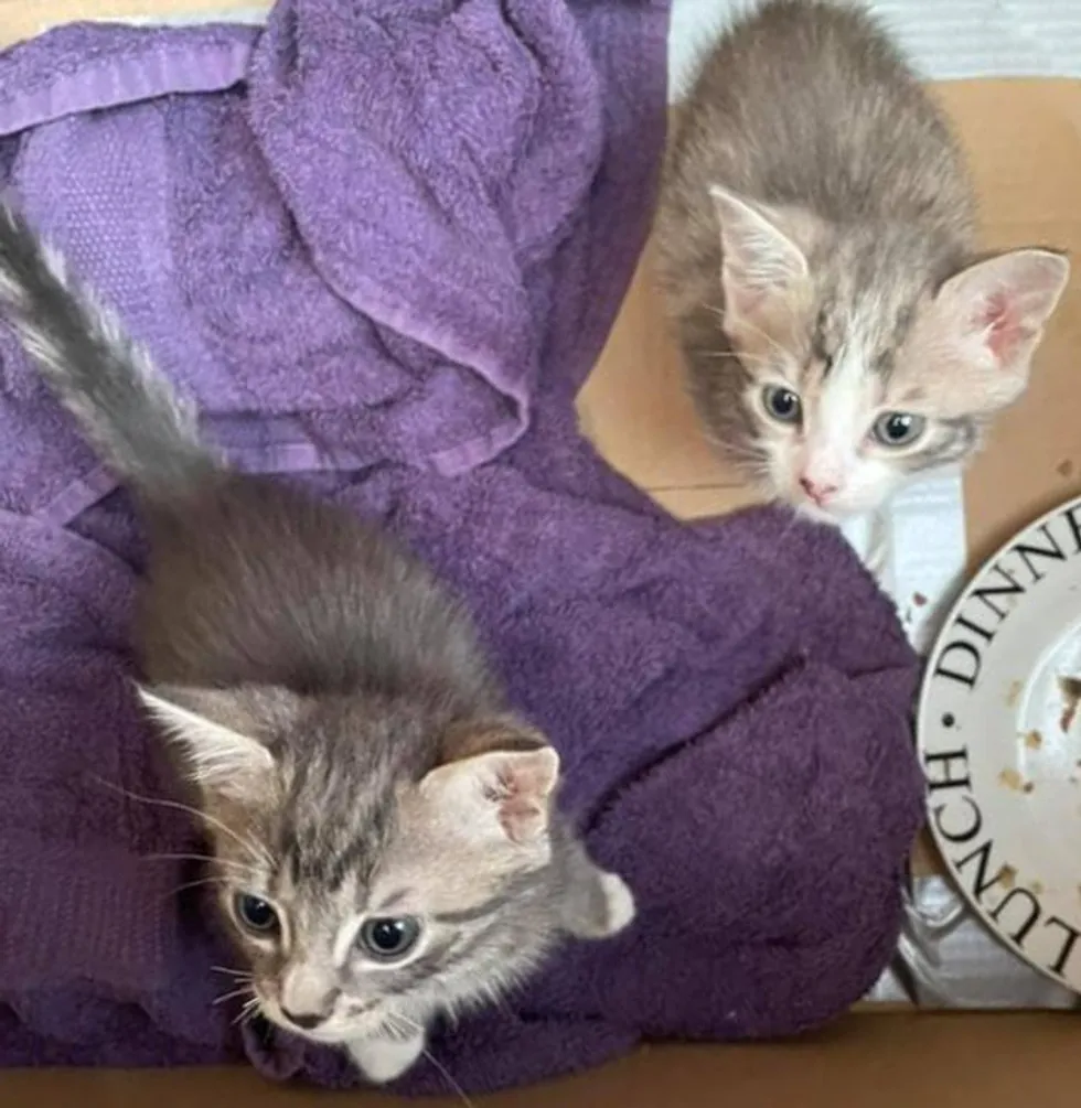 A kind couple found two kittens stuck in a bin and rushed to help. They saved them just in time and turned their lives around.