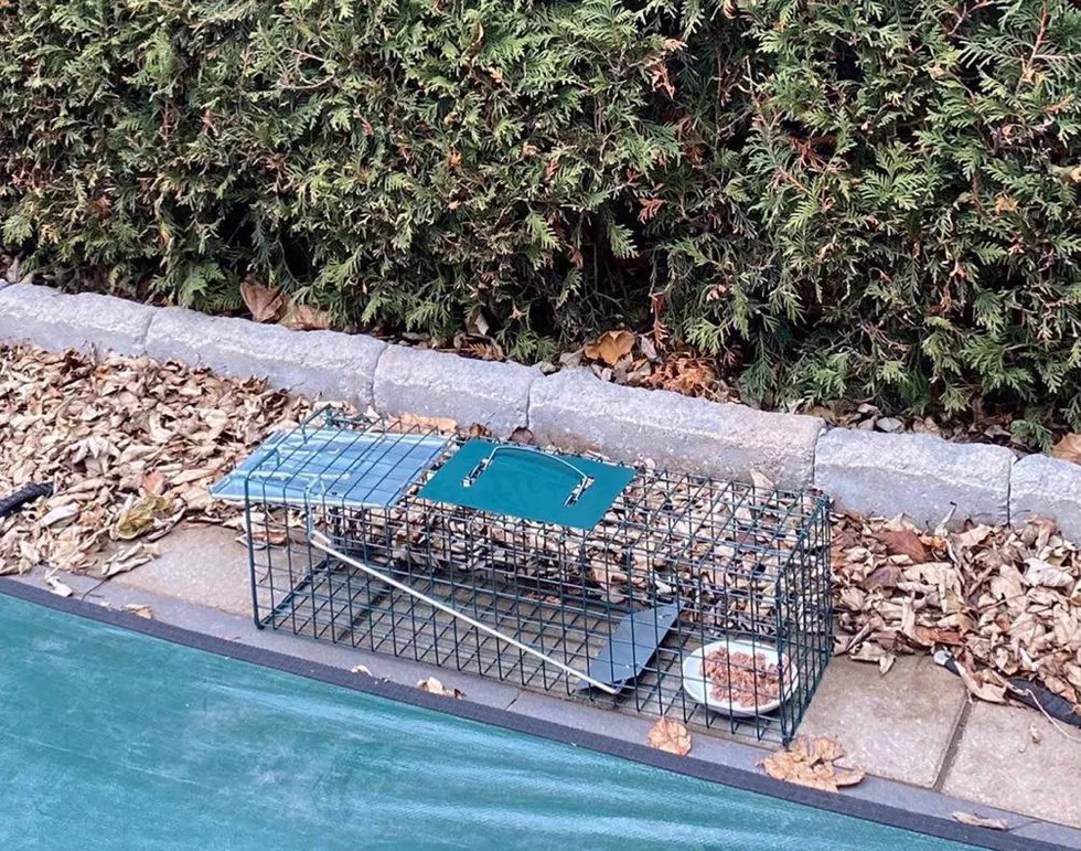 After nearly a day of waiting with no sign of the mother, the kind lady set out a plan to rescue the kitten before the temperature dipped any further. She went to get a humane trap and placed it near the bushes with some food to coax him out.
