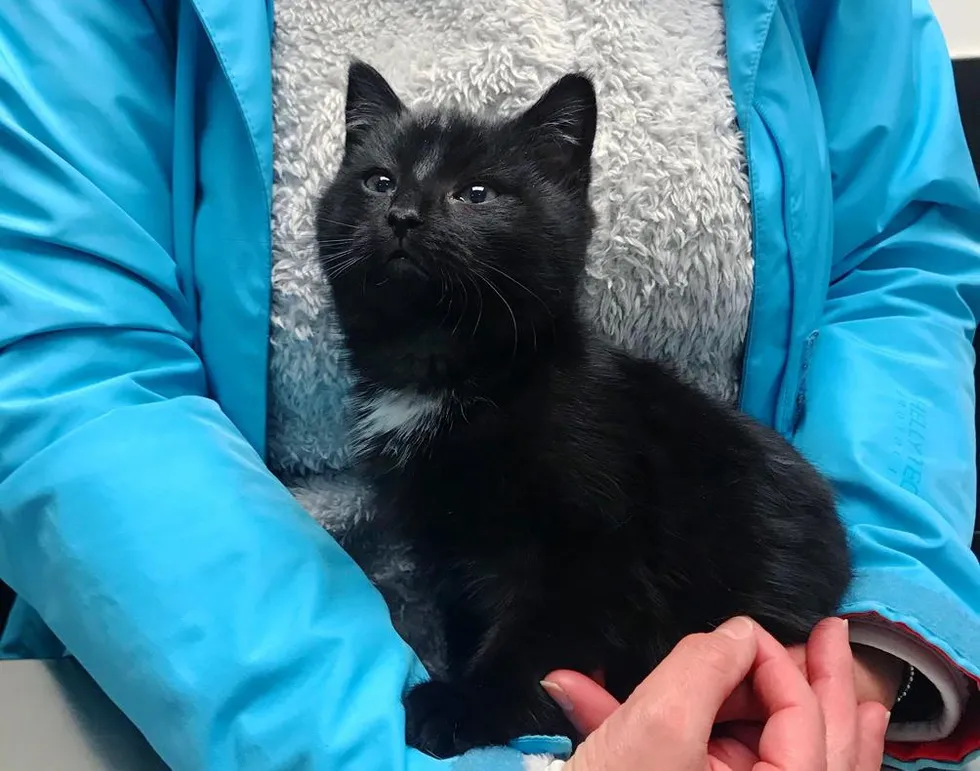 The kind woman reached out to Chatons Orphelins Montréal, her local cat rescue, so the kitten could get the medical attention he needed and a chance at a better life.