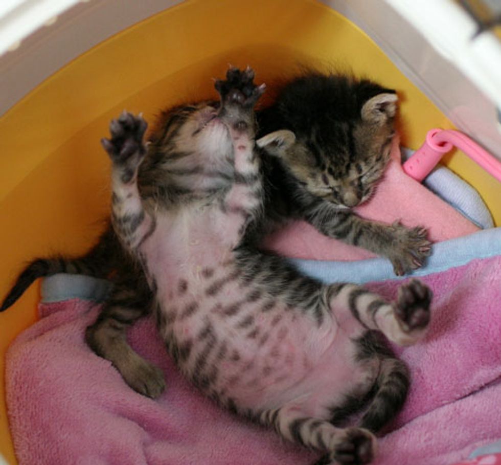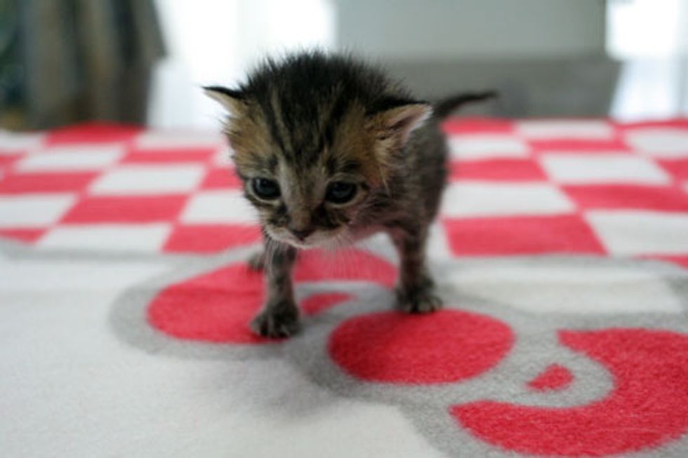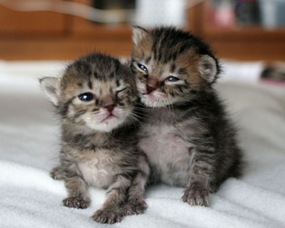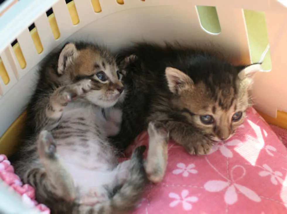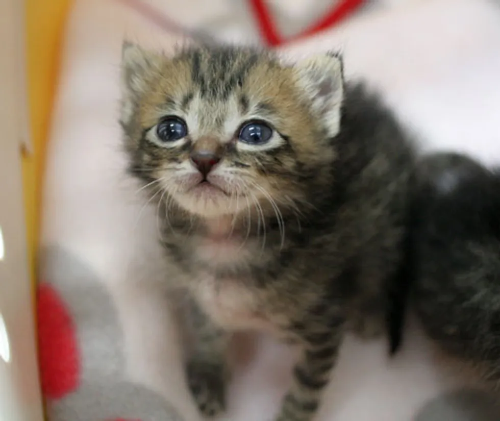 The cries got louder as she approached it. When she opened the box, there were two tiny little kittens whose eyes just recently opened squirming around in the box. Right away Chobi decided to take the little kittens home with her.