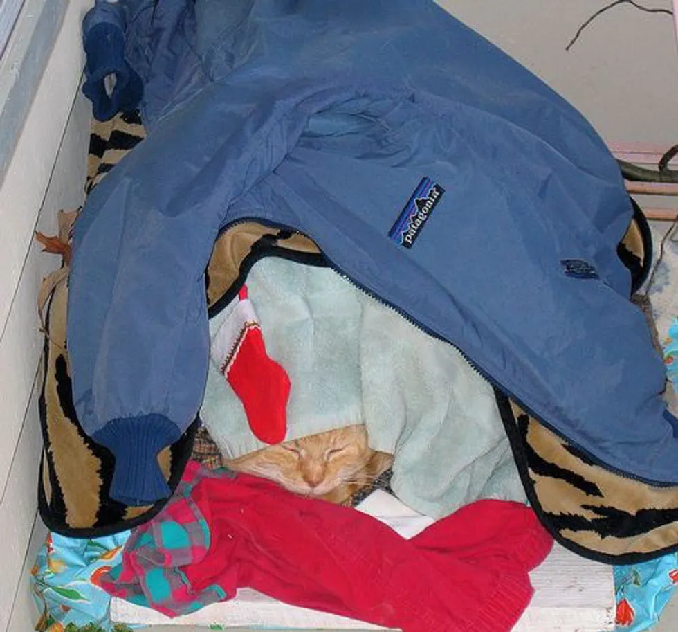 When the cold weather set in I put blanket-lined boxes out for both of them underneath the chairs and covered the chairs with sleeping bags and waterproof material so they could have shelter in the cold. I didn’t know if they would use them or not. Sadly, those two cats were in the boxes every night. My heart nearly broke when I realized they had absolutely no where to go.