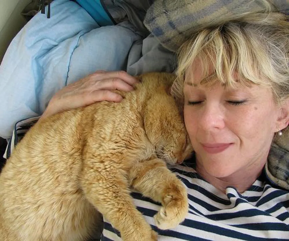 After about a year and a half, Meatie got to the point of climbing onto my lap if I sat on the ground and put my legs straight out.