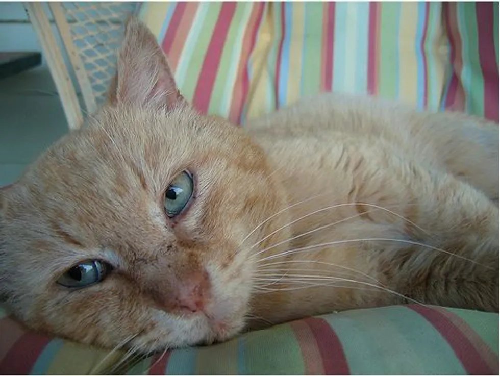 This poor cat has suffered terribly with his mouth problems and with the general health problems he has and continues to have. He is a domestic animal, at least 10 years old, who has been abandoned, neglected and/or abused by people.
