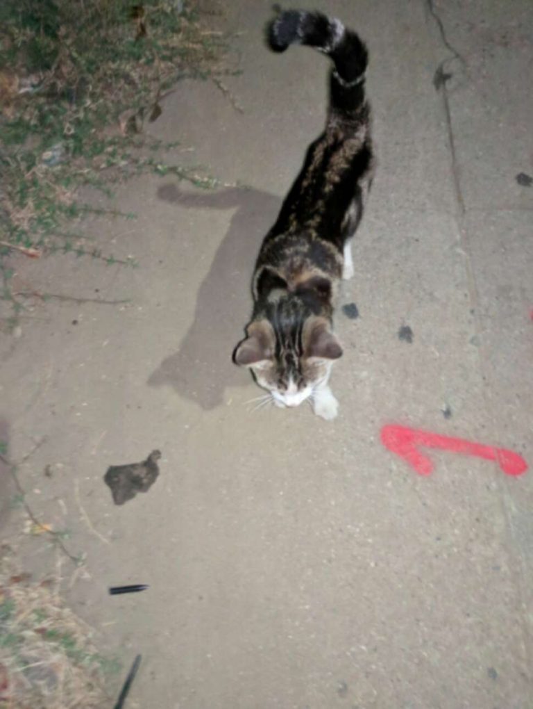 The cat followed Manning all the way home and came inside to explore the house for a bit.