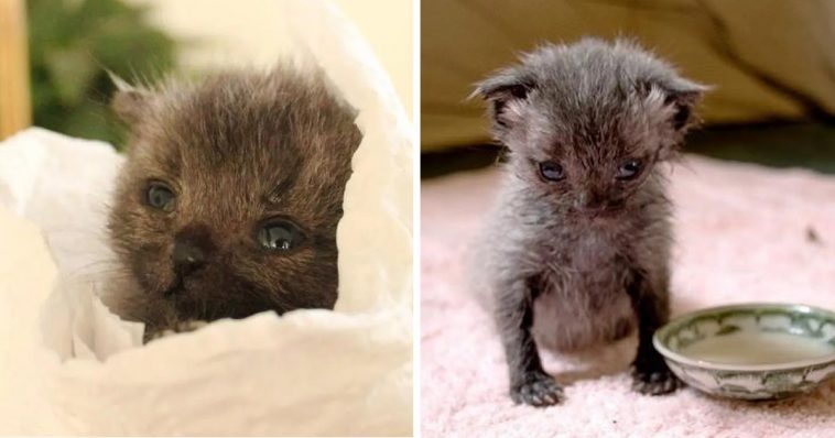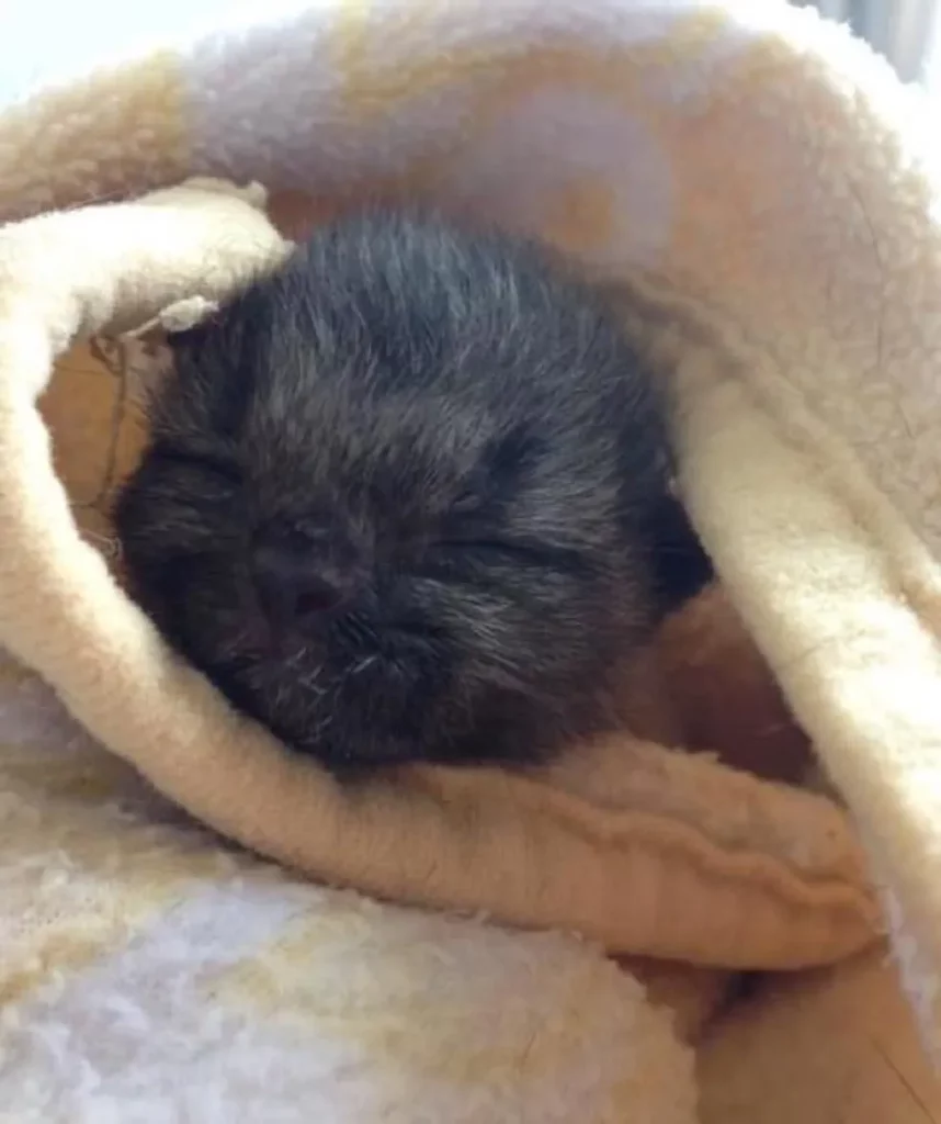 She took him home and gave the little kitten food that he desperately needed. On day three, Bruce started purring.