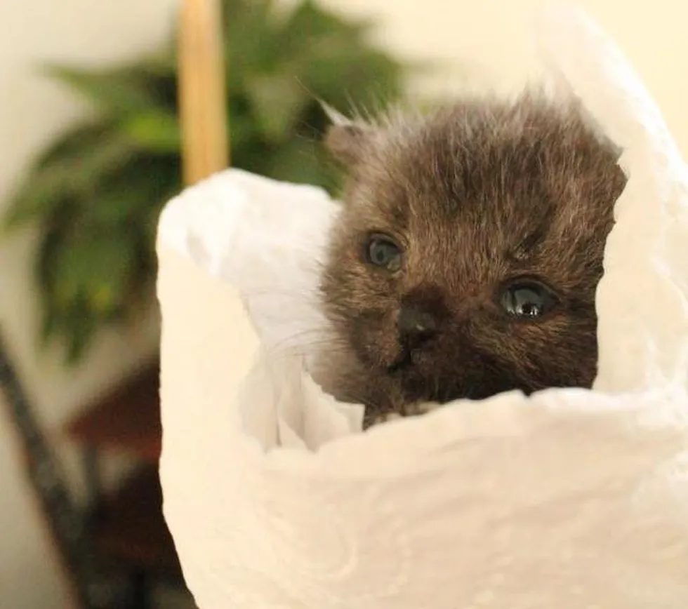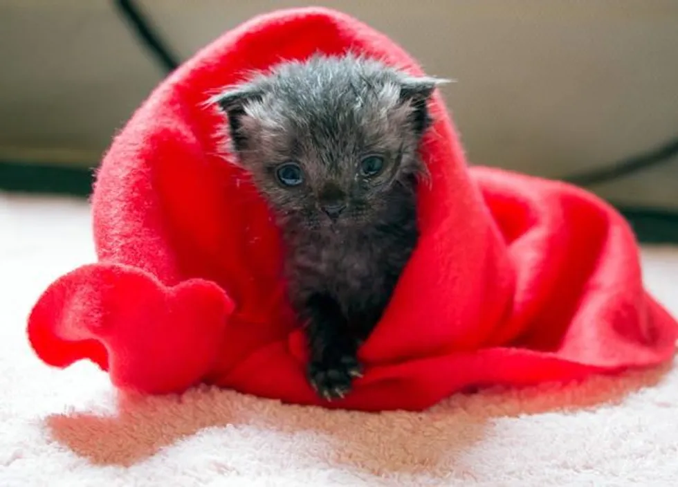 Two months ago, a tiny one-day-old kitten was found crawling down the footpath all by himself and soaking wet after a downpour.