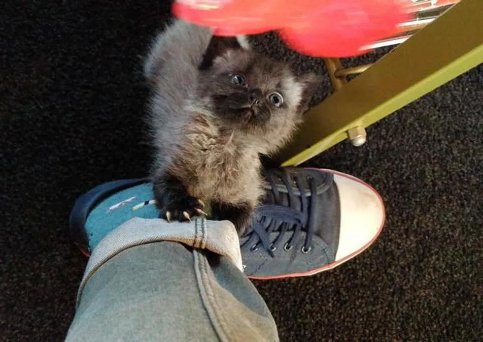 Feeding and caring Bruce became a full time job for Kathryn. She had to get up during the night to feed the baby. Setting the alarm wasn’t necessary because they soon realized that despite his tiny size, Bruce was louder than any alarm clock when he was hungry. Kathryn took the kitten with her to work for the first few days of his life.