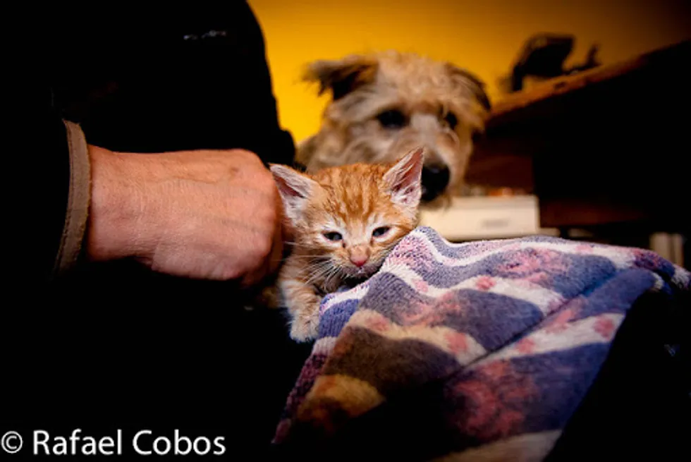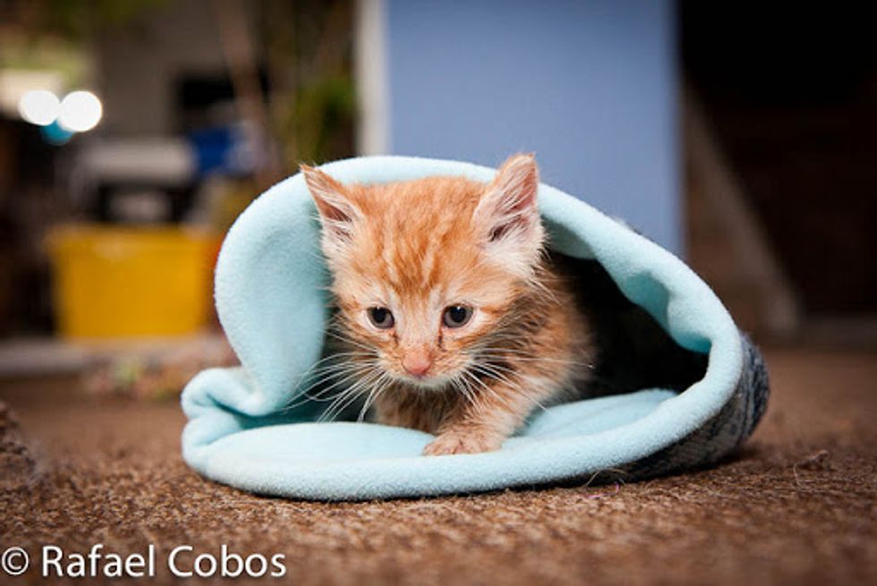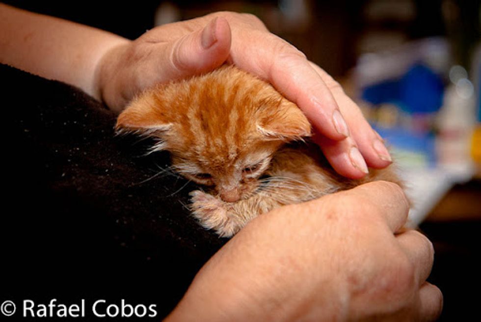 This ginger baby was rescue recently by Rafael Cobos’s neighbor at a farm. She was one of the feral kittens that survived in her litter. “Our next door neighbour found her hiding, soaking wet from the rain and suffering mild hypothermia,” said Rafael.