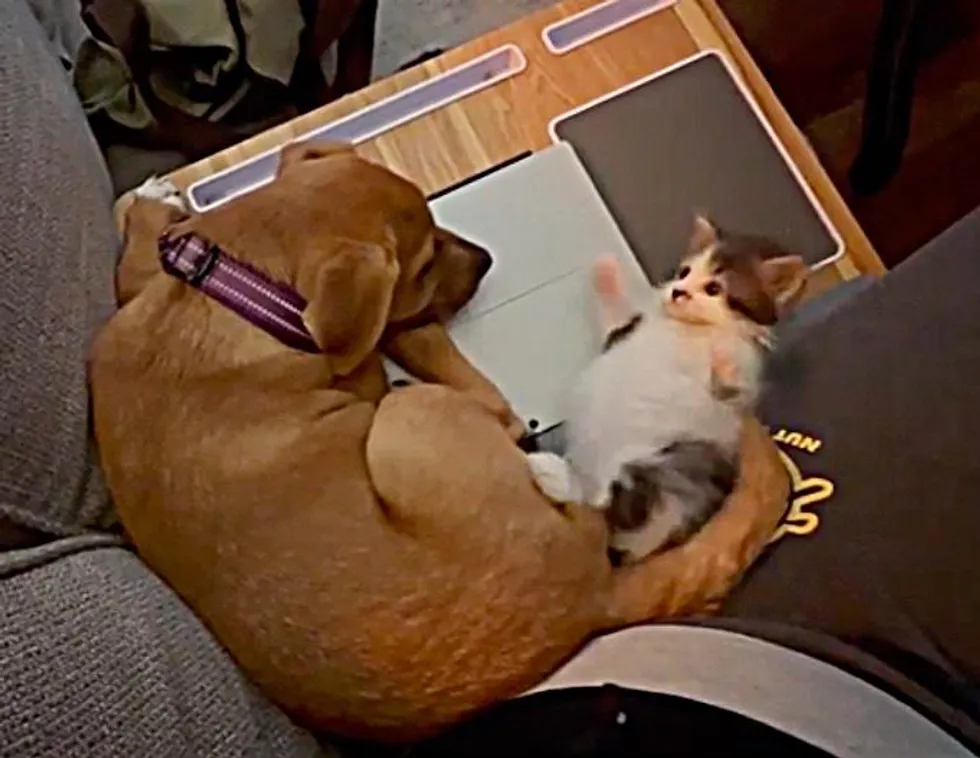 A kitten who was found in a bush, picked a puppy to be her family and decided to adopt him herself.