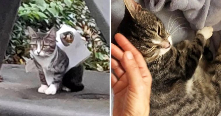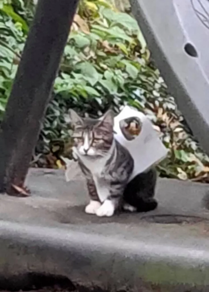 A woman spotted a stray kitten trapped in plastic. She immediately rushed to her rescue.