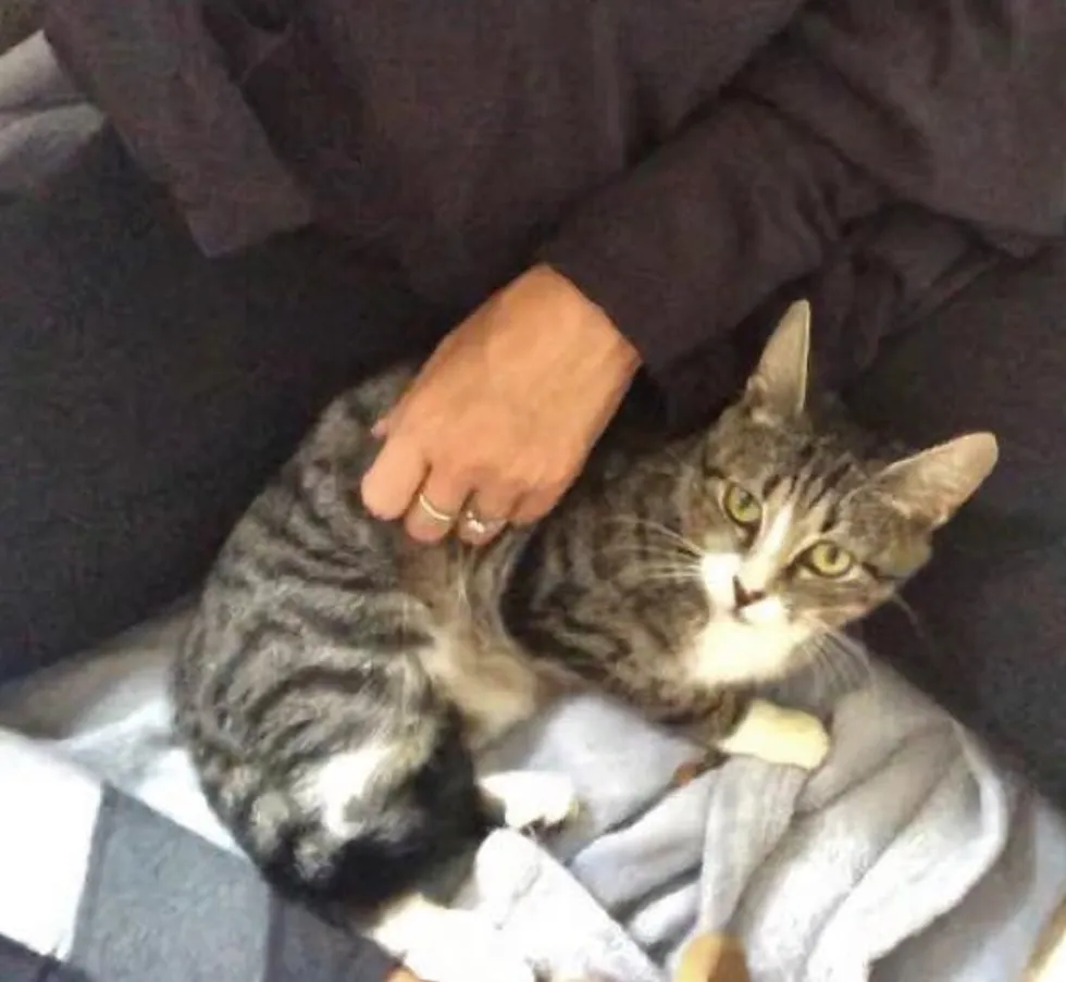 The tabby somehow got herself stuck in the packaging and was unable to set herself free.