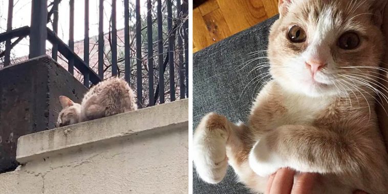 A kitten who was found on a concrete wall, made a complete turnaround and won the heart of the person who took him in.
