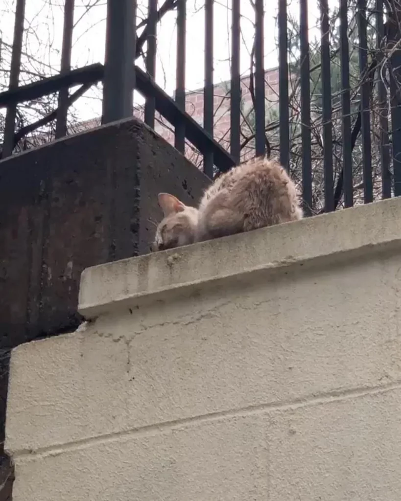 Little Wanderers NYC was contacted about a kitten spotted on a concrete wall in the Bronx (New York). He was in very rough shape, meowing for help. Volunteers of the rescue raced to save him and rushed him to the vet.