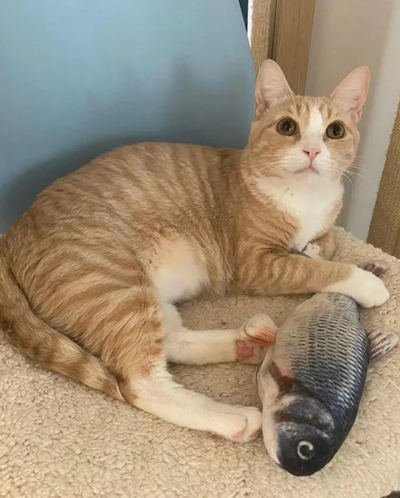 “Clayton means the world to me. I wake up most nights and he’s snuggled himself in my arms. He’s the perfect cat dad to all of my fosters. He’s so patient, gentle, and funny,” Rebeccah wrote.