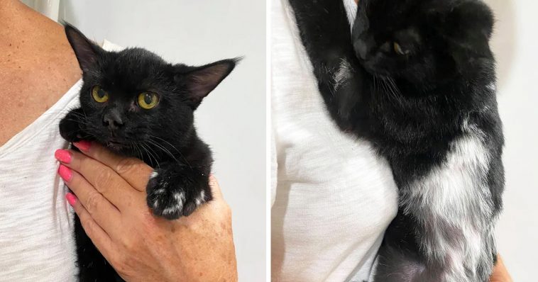 The kitten’s back, where the burns were, is now covered in peppery white. Some of her paws are also sprinkled with dots of white. It’s likely that the injuries have caused pigment alteration and resulted in the fur color change.