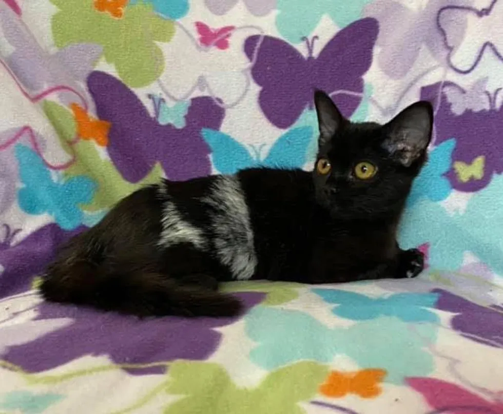 “She was adopted by a wonderful family who drove over an hour and a half to get her. She was also adopted with another kitten she made friends with while here, Cinnabon (the tabby),” Samantha told us.