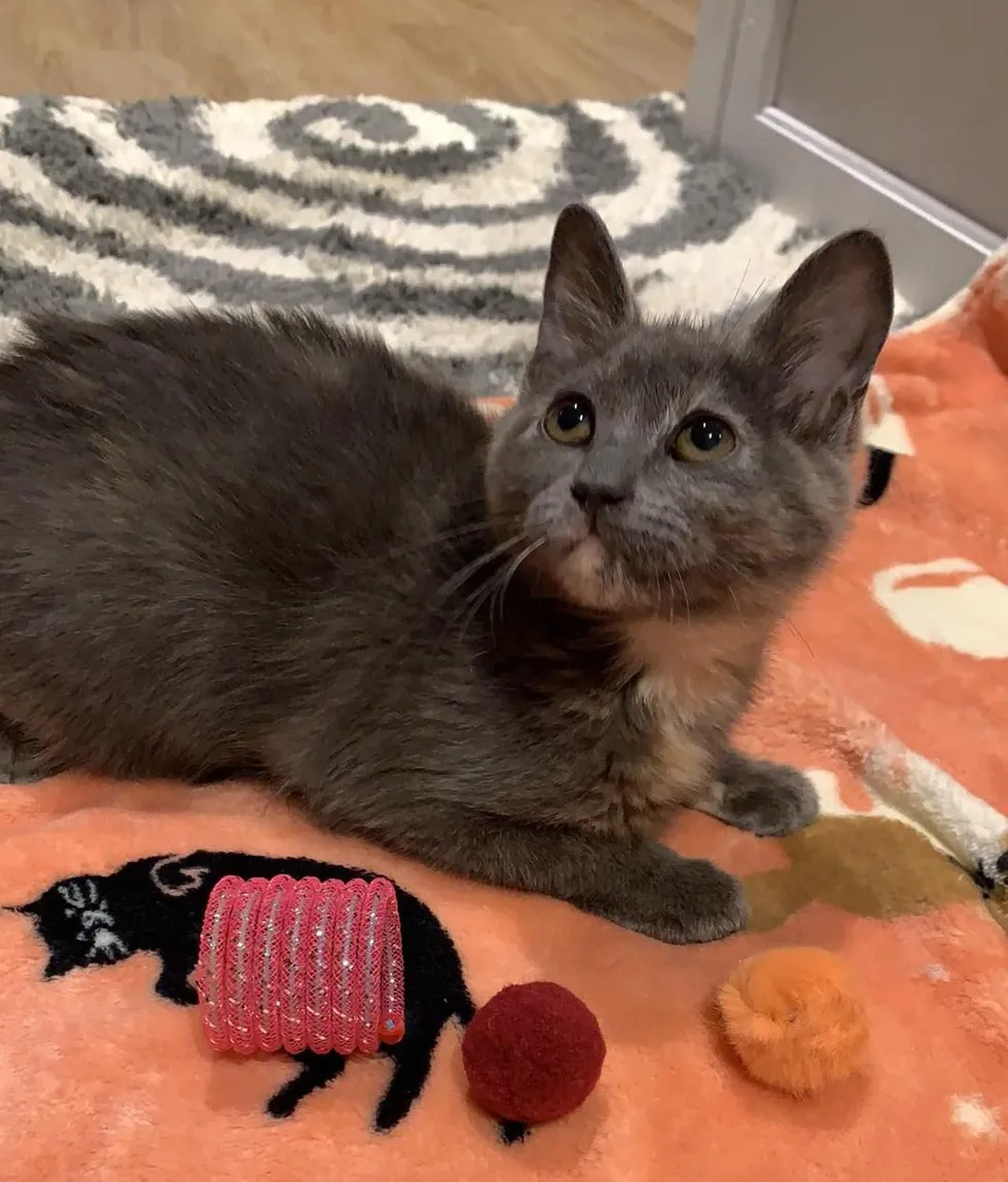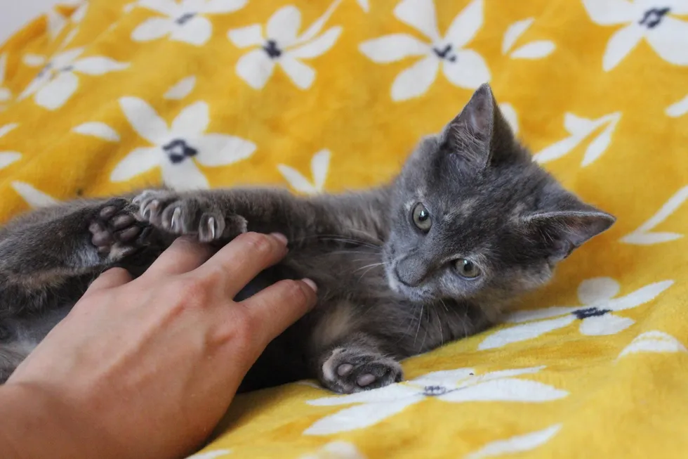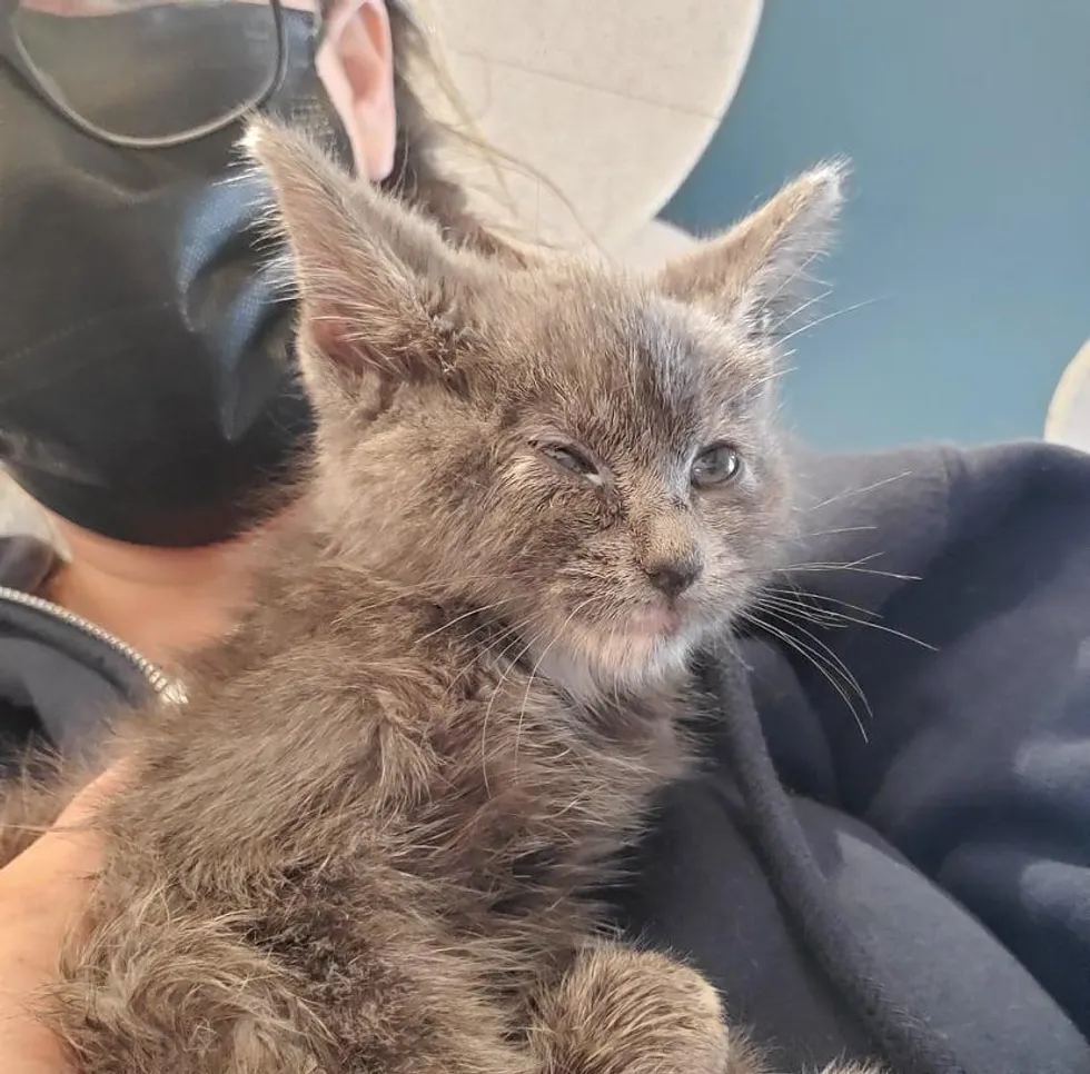 A volunteer of the rescue rushed to the clinic to help get the kitten into emergency care. The little one named Stormy was frail, dehydrated and having tremors.