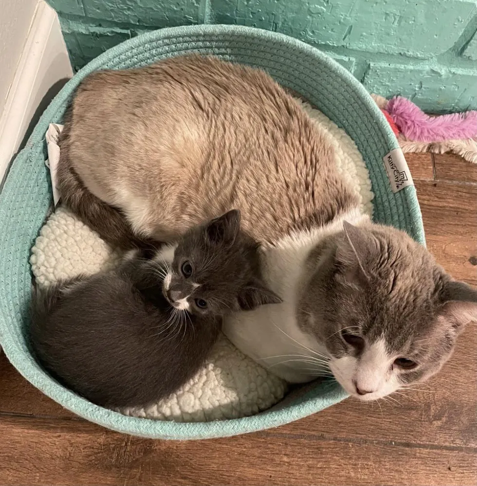 Their energy rubbed off on Oliver and their purrs and snuggles lifted his spirits. “He is a super mellow, friendly guy. He loves it when the kittens cuddle with him. We often find foster kittens choose to cuddle with him over siblings.”