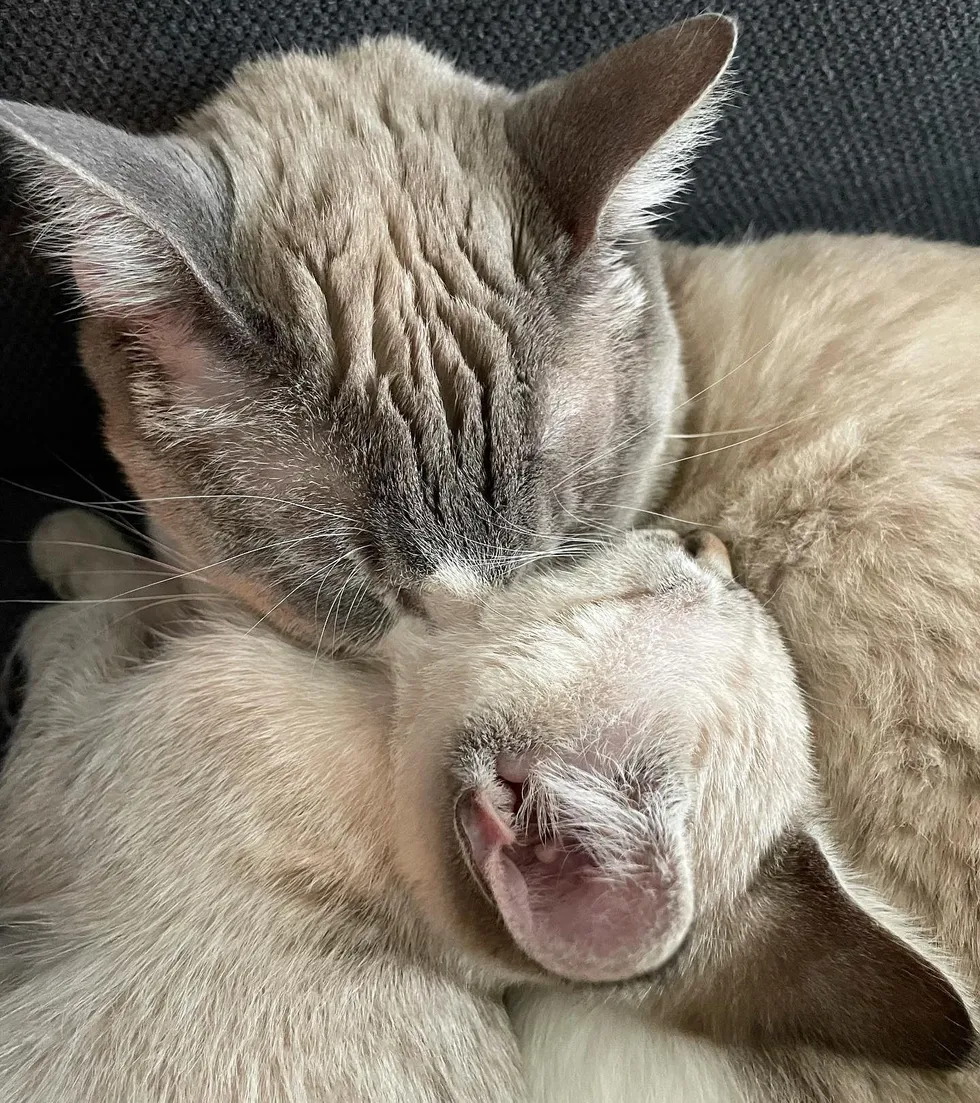 Oliver welcomed her with open arms as if he knew just what she needed. He showered her with cuddles and licks and the kitten just melted into him.