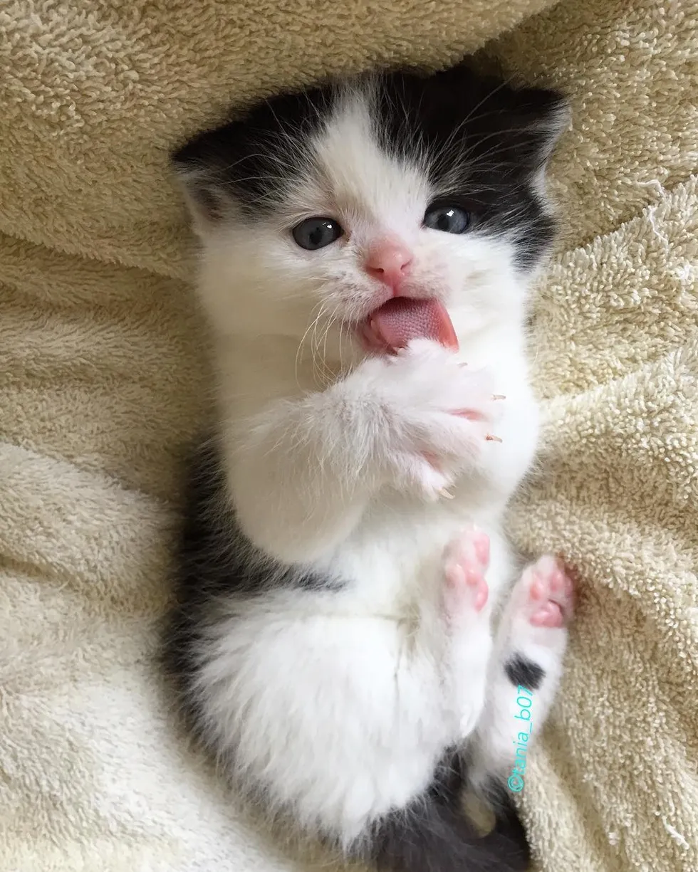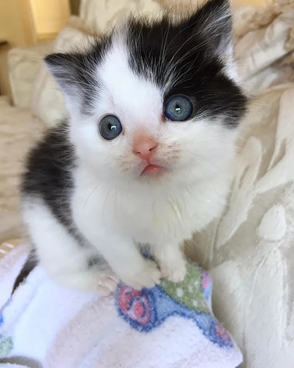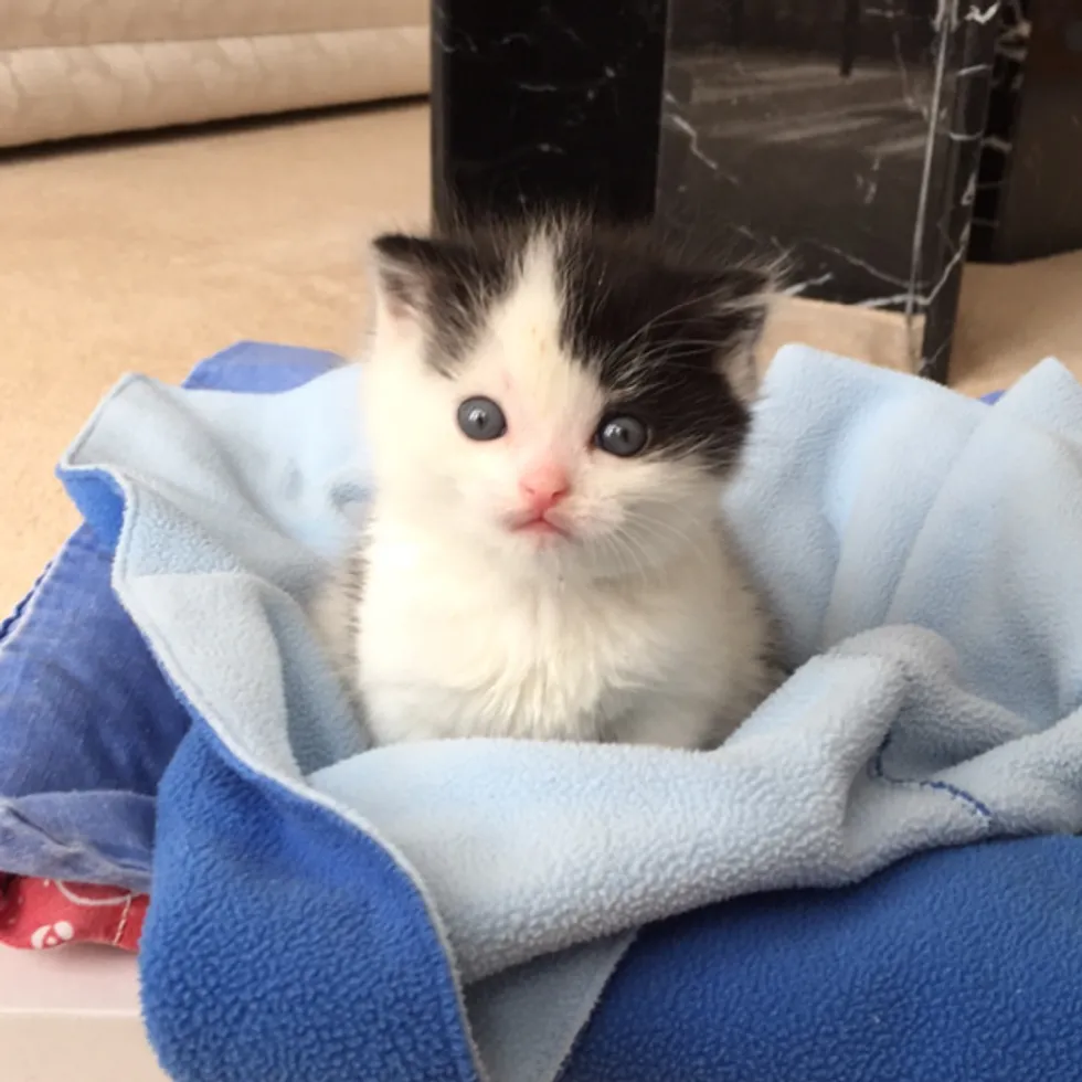 “He was on his back with his tiny pink paws up in the air and he fit in the palm of my hand. He was very friendly from the beginning.”