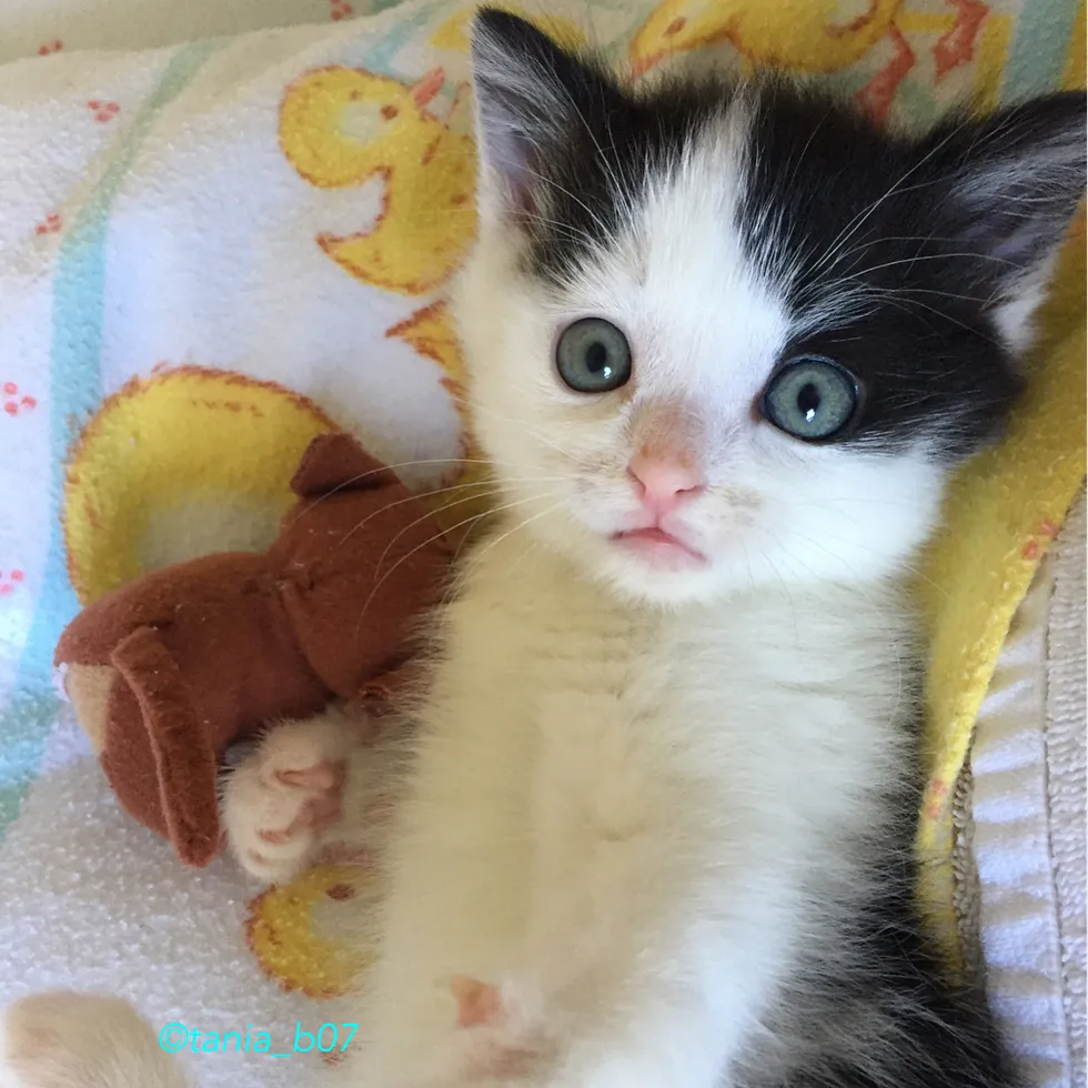 “A dog had found him and brought him home to his guardian who promptly took the tiny kitten into the Humane Society,” Tania, fosterer, told us.