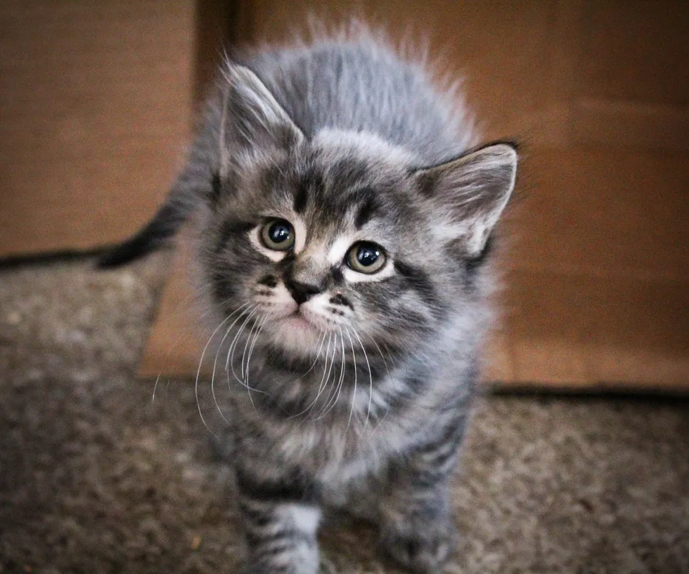 In April, 2017, Mama delivered seven adorable kittens with the same silver coat. This phenomenon is known as “fever coat”. Mama cat likely had a fever or stress during her pregnancy which affected the color of their fur. The kittens were born healthy otherwise.