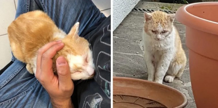The ginger and white cat vanished for a few weeks, and when he returned, he looked as if he had got into a big fight with a few cuts on his head and neck. “He was sitting in our garden, looking at the living room. My wife tried to get close to him but that wouldn’t work,” Stefan added.