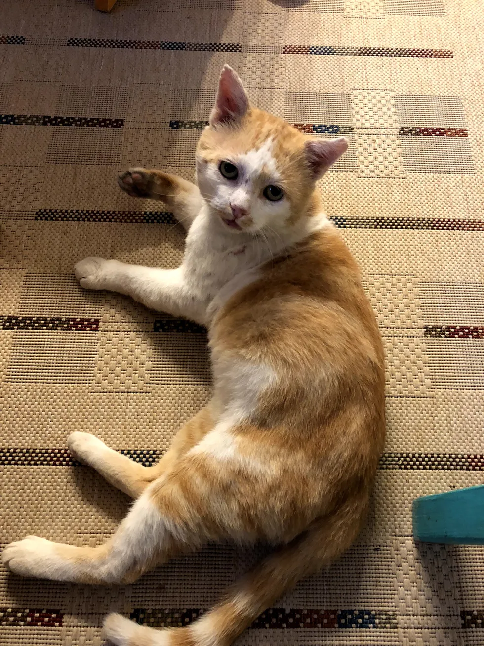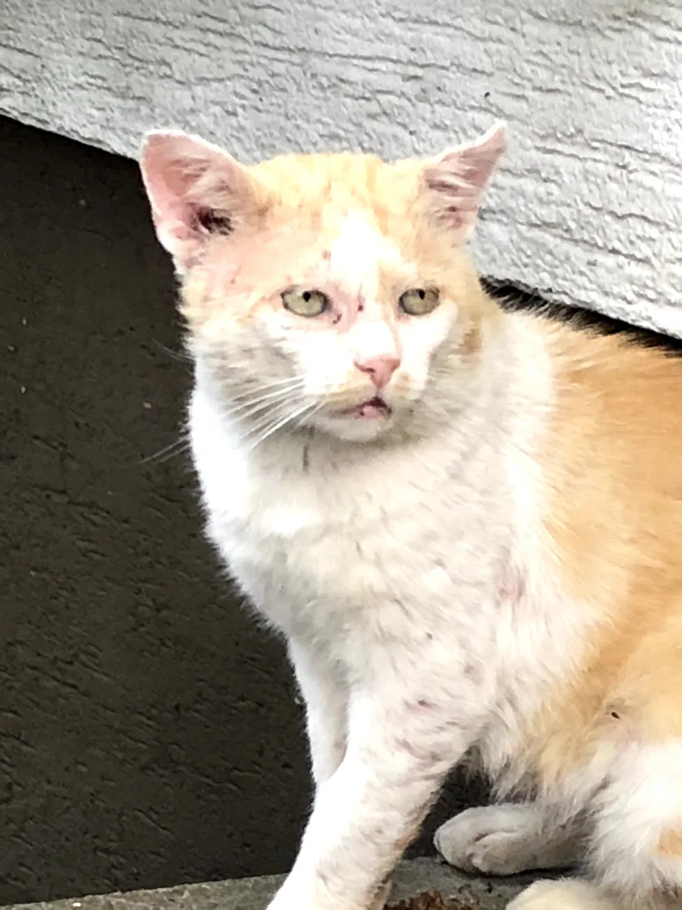 The sweet boy has come a long way since he showed up as a hungry, fearful, scraggly cat.