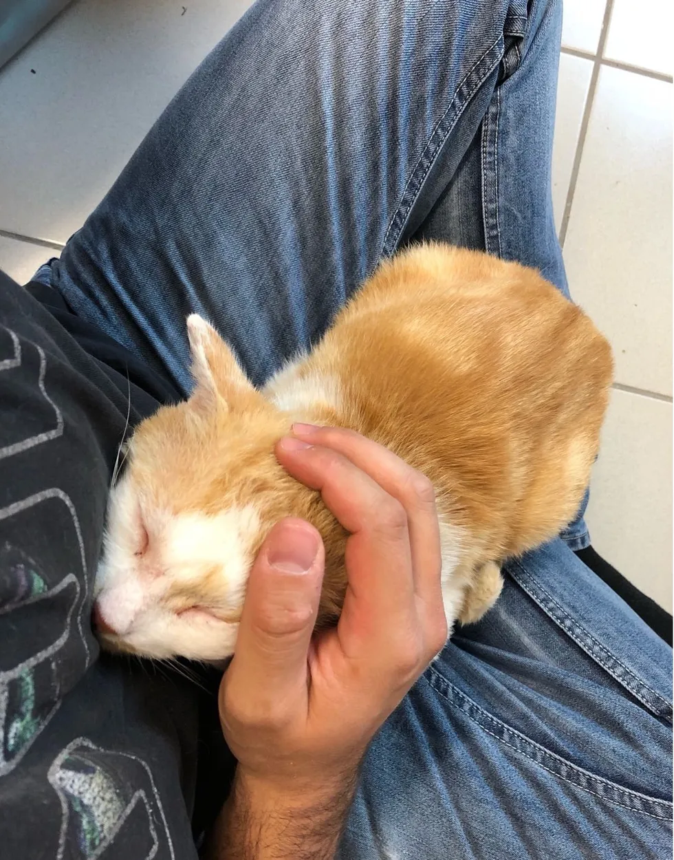 They got some meds from the vet to treat against fleas, worms and ticks. His wounds also healed up nicely. With love and a lot of patience, the kitty really came around.