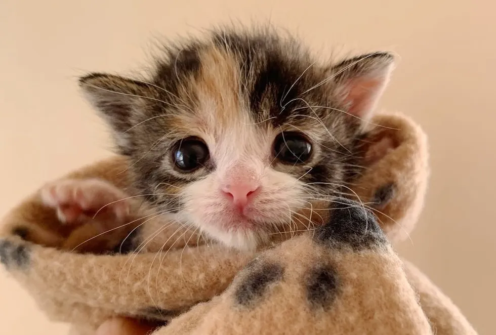 They immediately reached out to Alley Cat Rescue in Los Angeles to get the little one the help she desperately needed. At 2-3 days old, the calico weighed only 76 grams.